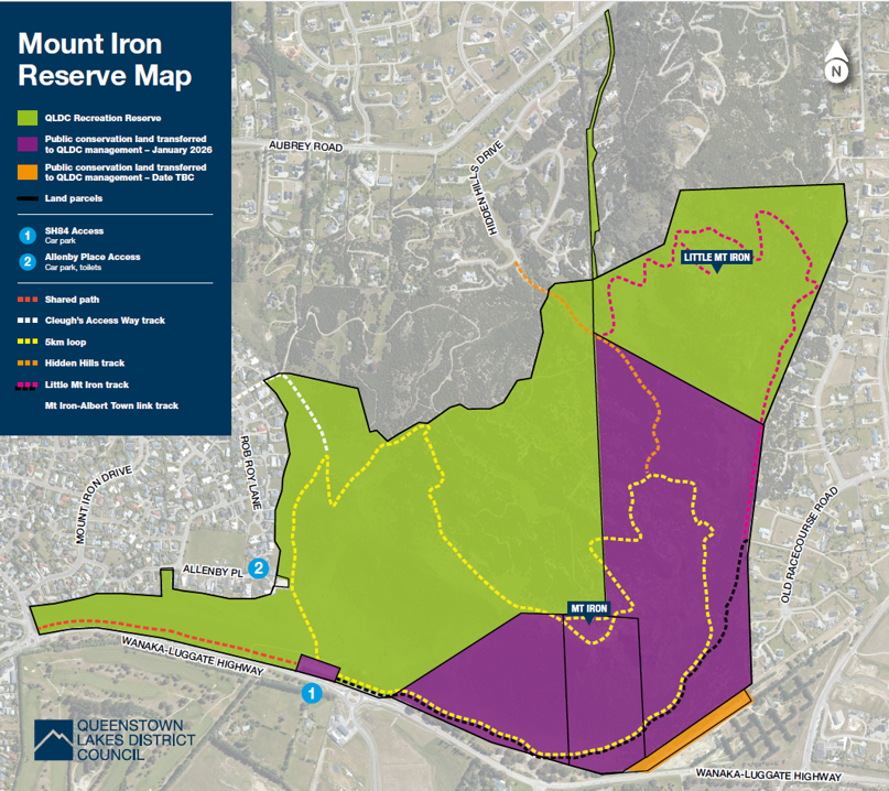 Queenstown Lakes District Council (QLDC) has taken over management of the public conservation land at Mount Iron in Wānaka. This land was previously managed by the Department of Conservation (DOC).