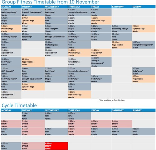 Group Fitness Timetable from 10 November