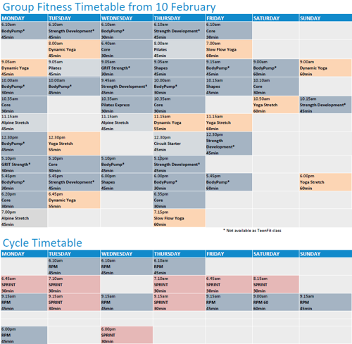 We occasionally make temporary changes to our group fitness timetable. These are normally posted on this page and also on our Facebook page. Look out for posters on the white board outside the group fitness studio at Queenstown Events Centre too.