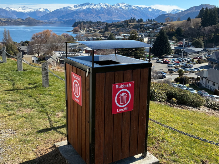 We provide public place rubbish and recycling bins around the Queenstown Lakes District to keep our open spaces clean and beautiful. Public place rubbish and recycling bins are for use when out and about - they’re not for commercial, household or camping waste.