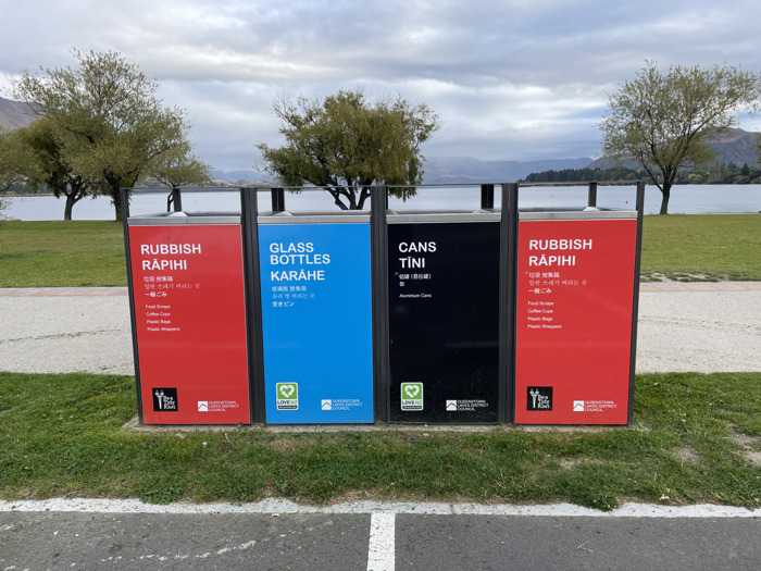 Public rubbish and recycling bins at Lake Whakatipu (Frankton).