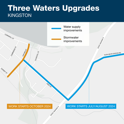 Construction of the three waters upgrades in Kingston are largely split into three packages of work: water supply, stormwater, and wastewater. The estimated start dates are: