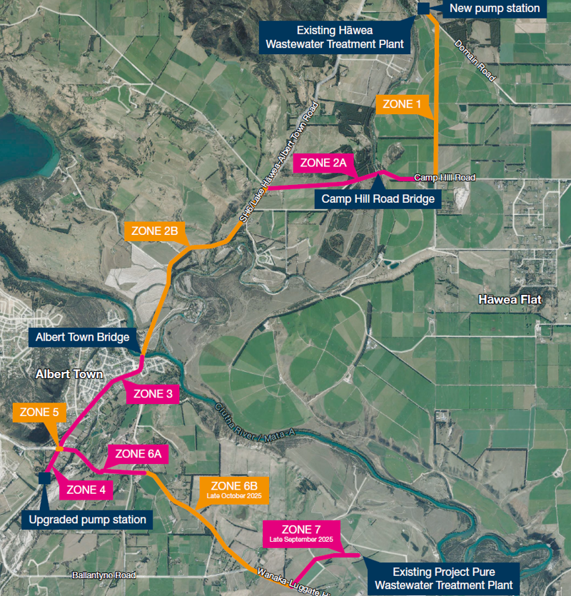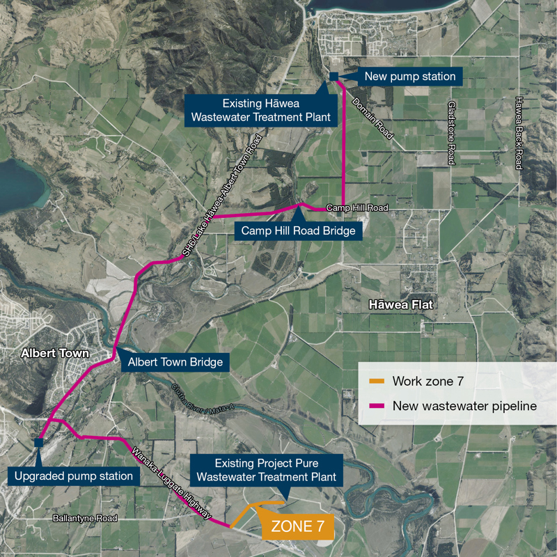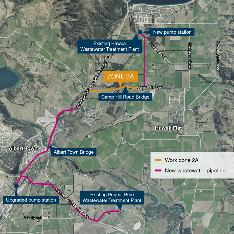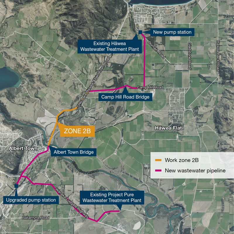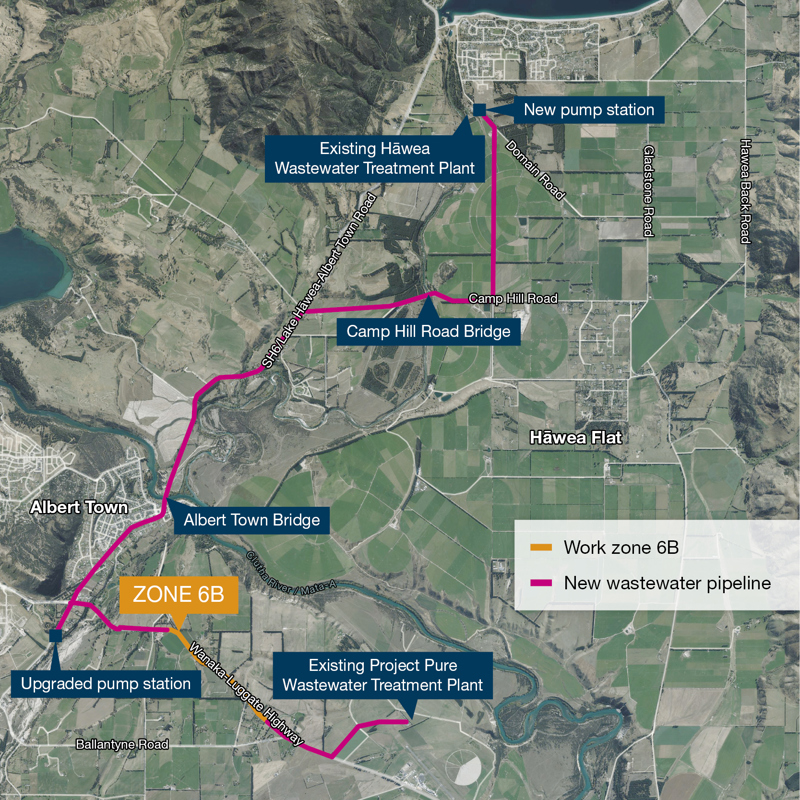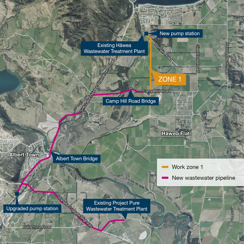 Construction of a new wastewater pump station (WWPS) at Domain Road in Hāwea and a 12.5km 315mm diameter pipeline from Domain Road to existing infrastructure at the Albert Town WWPS.